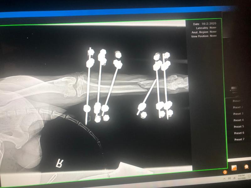 Orthopedic repair, canine hit by car, hind legs fractured