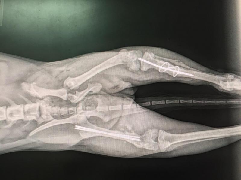 Orthopedic repair, canine hit by car, hind legs fractured
